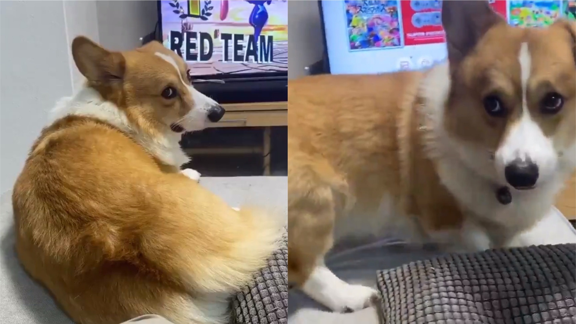 沒想到當主人結束了《任天堂明星大亂鬥系列》回合,按下 Home鍵並跳回 Switch 主介面,切掉遊戲帳號的那一瞬間,這隻聰明的哥基立刻察覺到主人已經打完電動,而興奮起身搖尾巴要主人帶牠出門散步,引發大量網友狂讚狗狗實在太可愛。