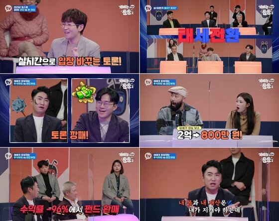 이런 가운데 장동민은 재테크 초보 시절 펀드로 무려 96%의 엄청난 손실을 봤던 경험을 고백해 모두를 놀라게 만들었다. 20대 때 2억원이 넘는 금액을 펀드에 투자했다가 그중 800만원을 제한 모든 투자금을 잃었다는 것. 심지어 큰 손실을 봤던 자신과 달리, 펀드 매니저는 고급 외제차를 타고 나타나 더욱 화가 났었다며 '돈 파쇄'와 맞먹는 쓰라린 손실 경험담을 허심탄회하게 밝혀 이목을 집중시켰다.