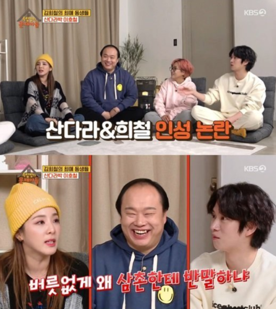 이에 산다라박이 입을 열었다. 산다라박은 “저희가 '미운 우리 새끼' 방송 이후 인성 논란이 있었다. '김희철, 산다라박은 왜 삼촌한테 반말하냐'더라”라고 말해 주위를 폭소하게 했다. 산다라박과 김희철은 “우리는 평소에 ‘호철아’라고 부른다”고 덧붙여 웃음을 더했다.