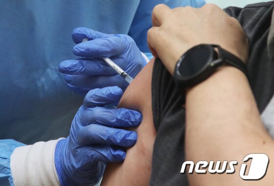 | 아스트라제네카 백신 접종이 시작된 26일 오전 경기도 안산시 상록구 안산시립노인전문병원에서 병원 직원이 접종을 받고 있다. 2021.2.26/뉴스1 © News1 경기사진공동취재단 |
