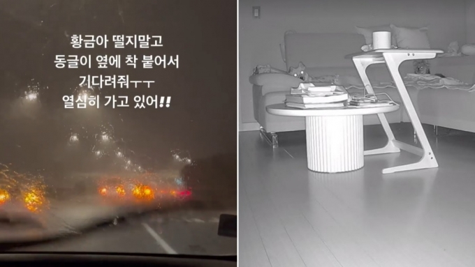 김영희는 지난 8일 자신의 인스타그램 스토리에 "황금아 떨지 말고 동글이 옆에 착 붙어서 기다려줘"라는 문구가 적힌 영상을 게재했다.