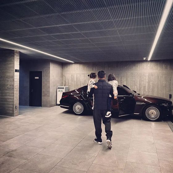 사진에는 박진영이 양 팔에 두 딸을 안은 채 걸어가고 있는 뒷모습이 담겨 훈훈함을 자아낸다.