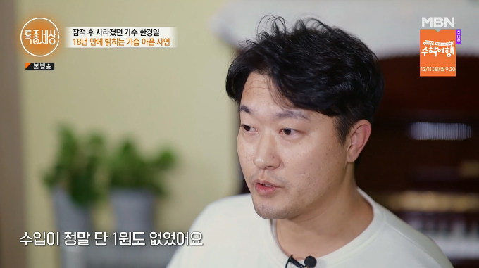 한경일은 "수입이 정말 단 1원도 없었다. '지금 집이 너무 힘들다'고 사정을 했는데도 (소속사에서) 돈 없다고 못 준다고 했다. 요즘 말로하면 노예 계약이었다"고 당시를 떠올렸다.