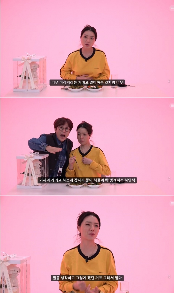 이어 "감정 기복도 심했다. 집에서 혼자 밥을 먹다가 배가 너무 아파서 미친 듯이 울었다"며 "제주도로 여행을 가기로 해서 술을 마시려고 가기 전에 확실하게 임신 테스트기를 했다. 두 줄이었다. 남편과 송은이 선배님에게 처음으로 알렸다"고 설명했다.