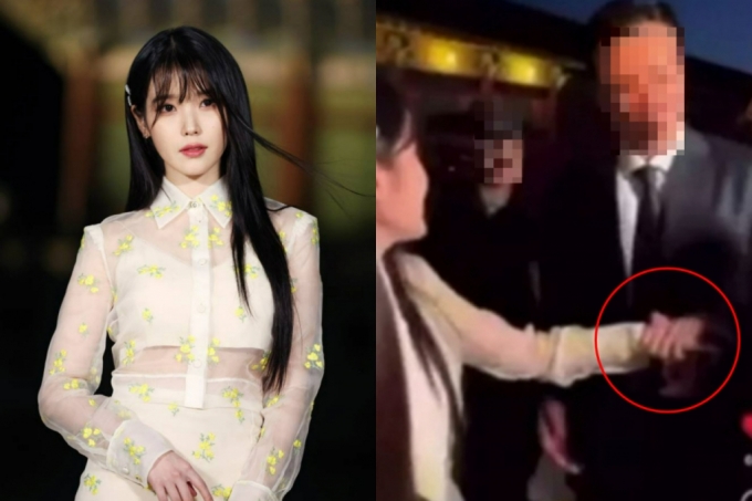 | 가수 겸 배우 아이유. 지난 16일 서울 종로구 경복궁 근정전에서 열린 구찌 패션쇼에서 아이유의 손목을 붙잡은 대만의 인플루언서 몰리. /사진=머니투데이 DB, 온라인 커뮤니티 캡처 |