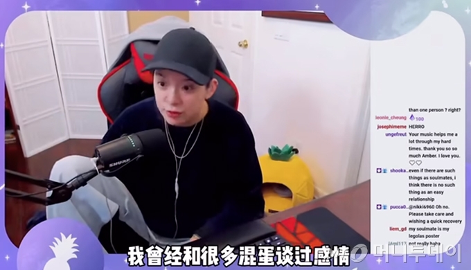 지난 7일(현지 시간) 엠버는 중국 동영상 사이트 빌리빌리에서 라이브 방송을 진행했다. 해당 라이브 방송에서 엠버는 구독자들과 사랑에 대한 이야기를 나눴다.